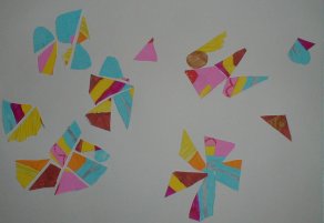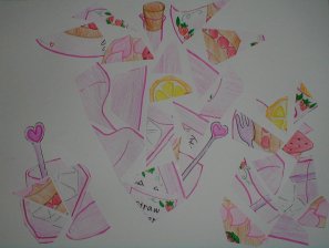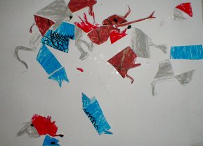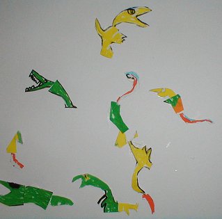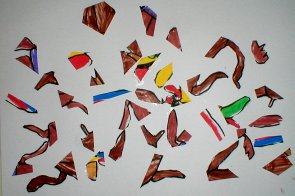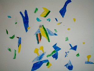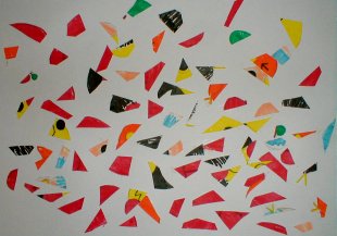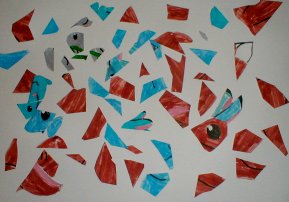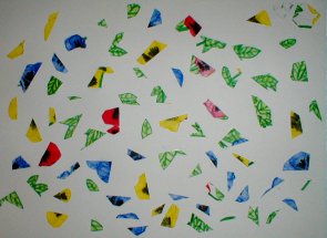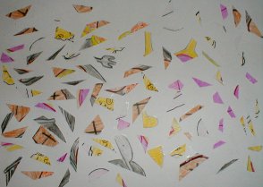 具体的に描いた絵をバラバラに切って再構成しました